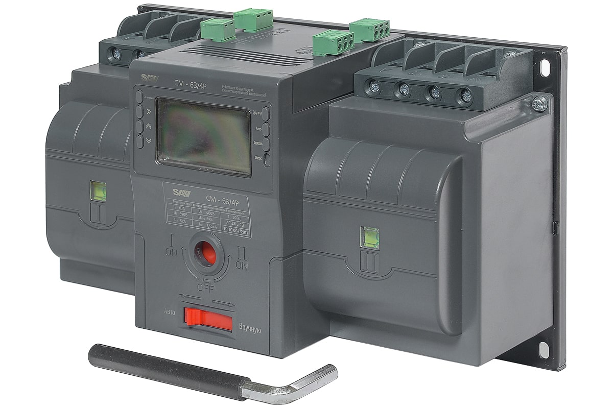 Описание Рубильник реверсивный автоматизированный моноблочный (Блок автоматического ввода резерва АВР) CM-63/ 032942